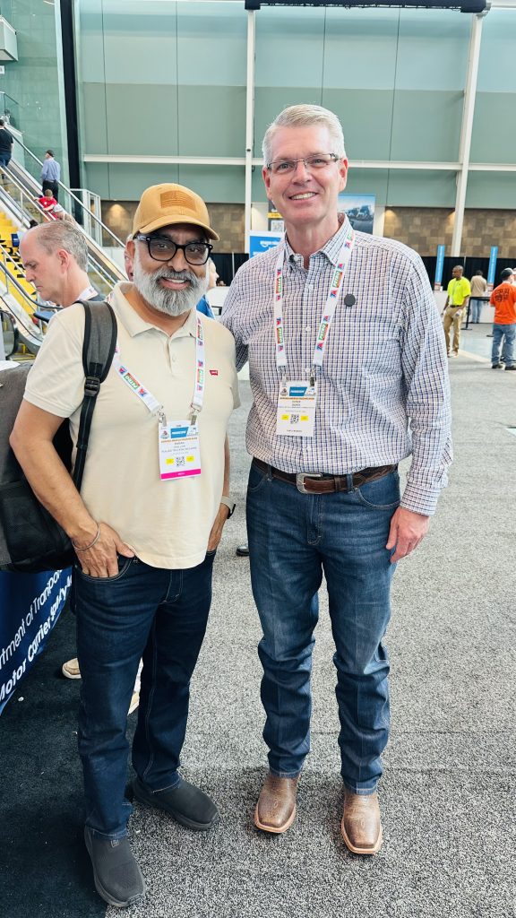 ਹਾਲ ਦੇ ਦੂਜੇ ਪਾਸੇ ਵਾਪਸ ਆਉਂਦਿਆਂ, ਮੇਰੀ ਮੁਲਾਕਾਤ Tapan Chaudhari ਨਾਲ ਹੋਈ, ਜੋ Hey Bubba AI dispatcher ਦੇ ਫਾਊਂਡਰ ਹਨ। ਅਸੀਂ ਨਵੇਂ ਫੀਚਰਾਂ ਬਾਰੇ ਗੱਲ ਕੀਤੀ ਅਤੇ ਮਜ਼ਾਕ ਵਿੱਚ ਫੈਸਲਾ ਕੀਤਾ ਕਿ Tapan ਨੂੰ “Bubba” ਵਾਂਗ ਤਿਆਰ ਕਰਾਂਗੇ। ਇਹੀ ਤਾਂ ਸ਼ੋਅ ਦੀ ਮਜ਼ੇਦਾਰ ਗੱਲ ਹੁੰਦੀ ਹੈ—ਦੋਸਤਾਂ ਨਾਲ ਹੱਸਣਾ ਤੇ ਮਿਲਣਾ।